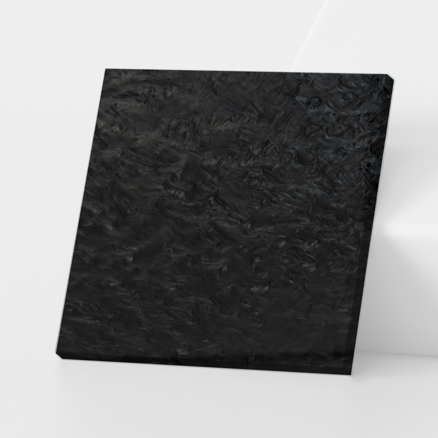 Our Black Marble Cast Acrylic Sheet features a smooth, glossy surface on both sides and a hand-swirled marble pattern with pearlescent depth, creating a unique, stone-like aesthetic. Each sheet is handmade, so swirl patterns and tones vary naturally, ensuring every piece is one of a kind.